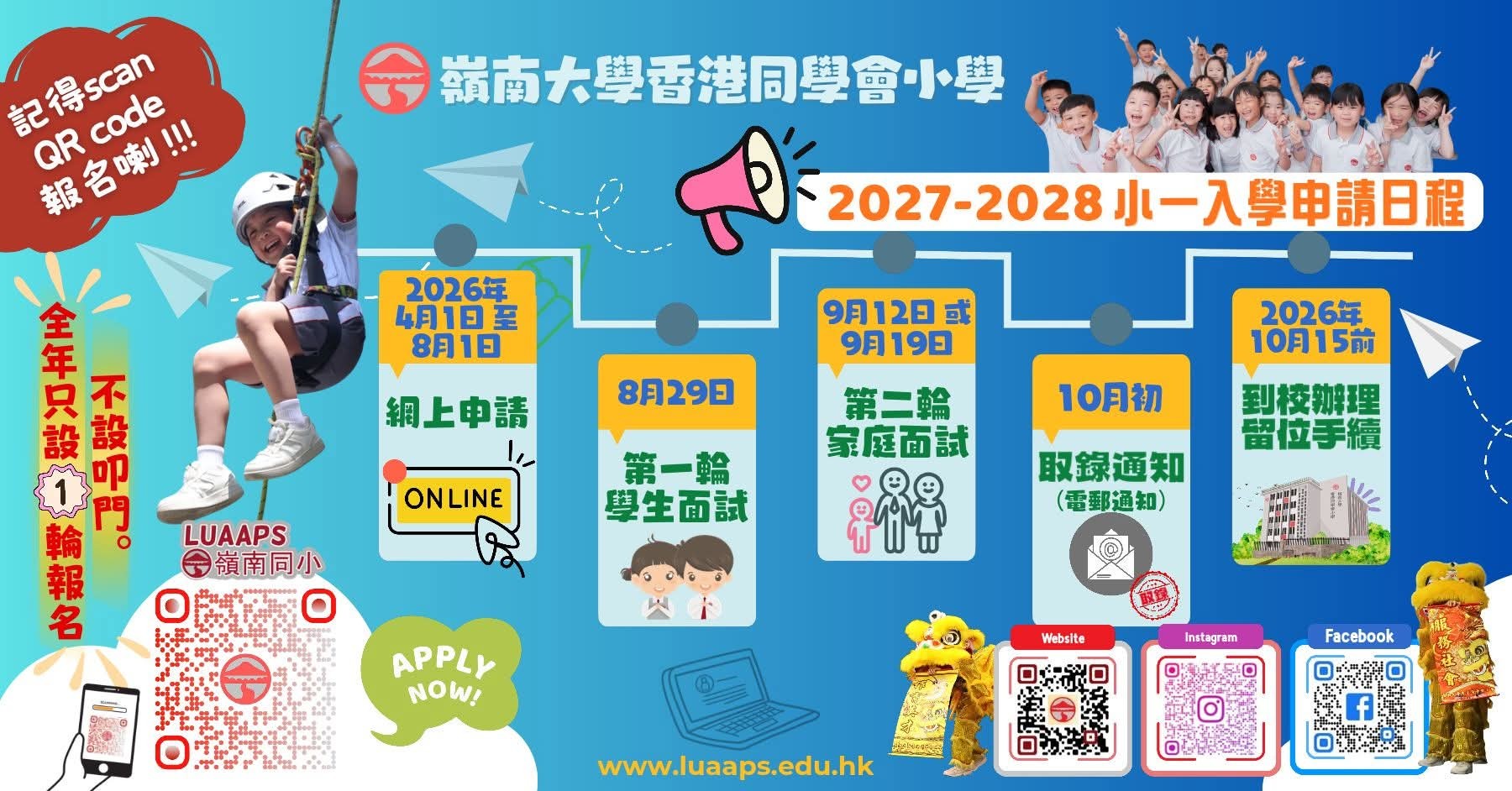 網上報名後,請以郵寄方式遞交下列所有文件:請以網上報名後的電郵回覆作Cover Page1. K1/2的成績表(如有)2. 學生最近證件相 1張3. 出生證明文件副本